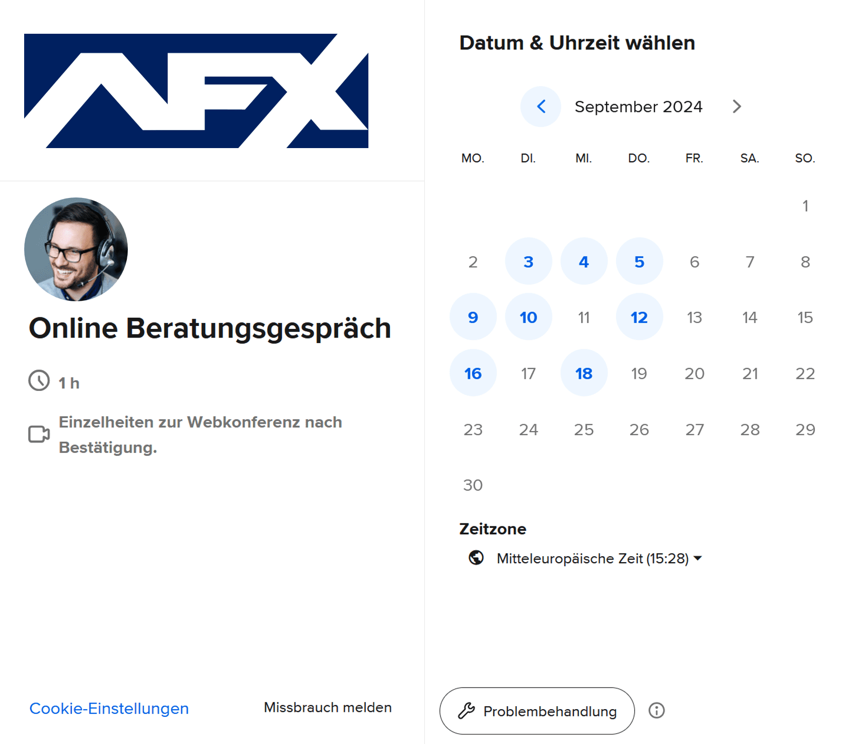 Kostenlose und unverbindliche Teilnahme